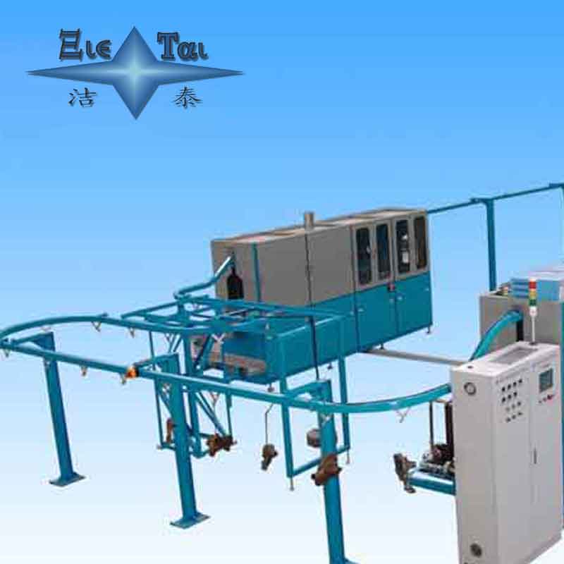 潔泰五金餐具用懸掛鏈式多槽超聲波清洗機,采用懸掛輸送鏈和專用掛具,懸掛輸送工件,設置超聲清洗、漂洗、噴淋、脫水、烘干等多道工序,變頻器無級調節懸掛鏈運行速度,適應多種工件不同需求的清洗節拍,可根據場地靈活布置各清洗工序,運行平穩,可靠性高,操作簡便,根據客戶不同的需求作非標設計。